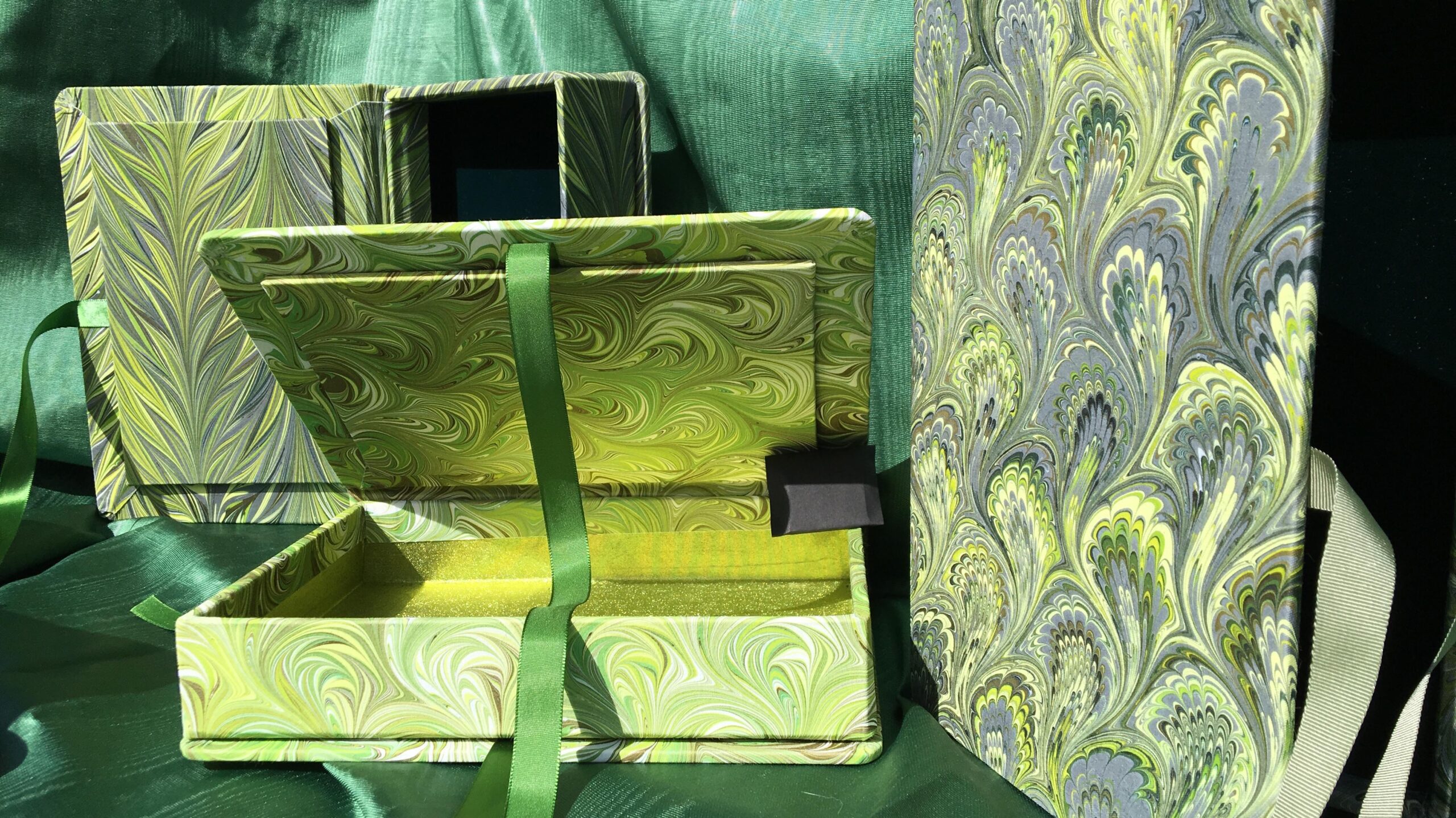 Originally this kind of box has been used by Libraries to preserve rare books or papers. The box was individually made according to the specific measurements of the book or collection of paper to preserve. In this workshop, you will learn tips on how to make your own book cloth out of any kind of fabric, as well as all the basic tips and tricks of box making will be shared during the construction of the box. Pietro will bring many beautiful, one of a kind, marbled fabrics from which to choose to cover your unique box.