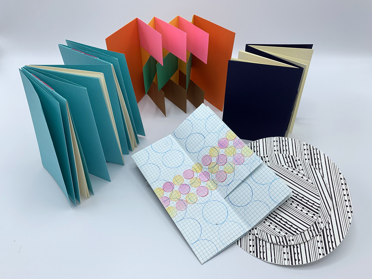 Explore artist’s books that defy conventional front-to-back reading. In this intensive three-day workshop, we will explore six approaches to non-linear bookmaking, including one-sheet books, flexagons, dos-a-dos, French door, flag books, and volvelles. We will learn multiple versions of each structure and techniques for adding content that works in tandem to create meaning with the non-traditional bookforms. Examples of artists’ books that use these structures will be shown and discussed. The group will also engage in brief idea generation exercises and friendly critique of their own creations. Participants will have the option to participate in an editioned artist’s book exchange at the end of the workshop.